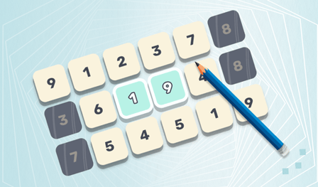 Primeiro, inicie 19 em seu navegador, seja em um computador ou dispositivo móvel. Escaneie o tabuleiro em busca de números que você pode riscar: escolha pares que sejam idênticos ou que somem 10. Selecione-os clicando no número, e veja-os desaparecer, permitindo novas estratégias a cada movimento.