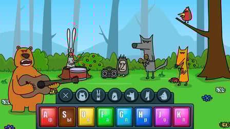 - Brinque com uma variedade de animais da floresta, cada um com seu próprio instrumento