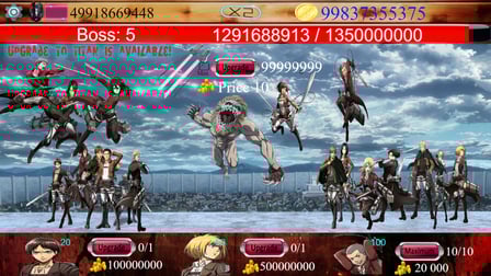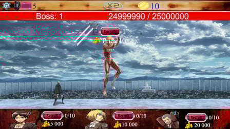 Attack of the Titans Idle é um emocionante jogo casual onde você pode desafiar chefes ferozes. Jogue online gratuitamente sem baixar e mergulhe no mundo cativante de personagens poderosos e atualizações estratégicas. Conforme você avança, você desbloqueará novos aprimoramentos, levando seus personagens favoritos ao nível máximo. A emoção não para por aí; uma vez que todos os personagens são totalmente atualizados, melhorias ocultas se tornam acessíveis, adicionando uma camada extra de intriga ao jogo. Disponível nas plataformas desktop e Android, Attack of the Titans Idle é perfeito para entusiastas de anime e para quem procura uma aventura sem fim sem registro.