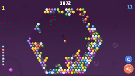 Balls Around é um emocionante jogo casual onde você pode mergulhar na ação dinâmica de tiro com bolhas. Jogue online gratuitamente sem baixar e mergulhe na reviravolta única do tiro de bolhas multidirecional. Ao contrário do clássico Bubble Shooter ou Zuma, Balls Around desafia você com bolhas se aproximando de todas as direções, criando uma experiência de jogo em constante evolução. Este jogo é perfeito para amantes de quebra-cabeças e jogadores casuais, desde iniciantes até jogadores experientes. As regras simples, juntamente com a mecânica profunda, permitem que você relaxe, crie estratégias e concorra a novas pontuações mais altas. Com níveis infinitos e a oportunidade de subir na tabela de classificação, Balls Around oferece diversão sem fim e uma nova visão de um gênero amado.