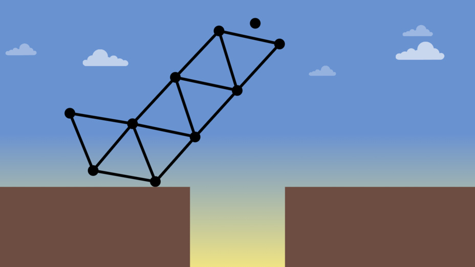 - Continue adicionando vigas e nós para estender sua estrutura pelo campo de jogo.