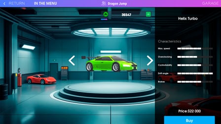 Os jogadores podem desbloquear uma variedade de veículos, cada um com características únicas de manuseio e velocidade, tornando cada experiência de corrida distinta.