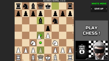 Comece selecionando o nível desejado de visibilidade e dificuldade. O jogo oferece três níveis de visibilidade, permitindo que você faça a transição gradual para o jogo com os olhos vendados. Escolha jogar contra um oponente de computador ou resolver quebra-cabeças de xadrez projetado para aprimorar suas habilidades. Mova suas peças usando a notação de xadrez padrão e confie em sua memória e cálculo para navegar no jogo.