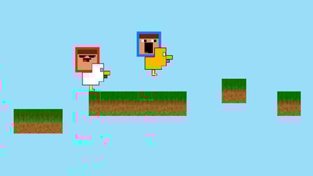 Comece entrando em um lobby com um amigo. Cada jogador seleciona um personagem noob e uma galinha. Assim que o jogo começar, ambos os noobs correrão continuamente para a frente. Você precisará tocar no botão de salto no momento certo para saltar sobre obstáculos e manter sua velocidade de frango alta. Lembre-se de se comunicar com seu colega de equipe para obter os melhores resultados!