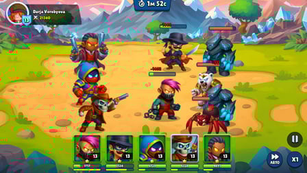 Ao completar missões e vencer batalhas PvP, você pode desbloquear heróis adicionais e artefatos únicos para aprimorar sua equipe!