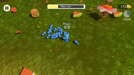 - Colete power-ups para melhorar as habilidades de suas formigas