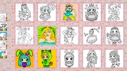 Mergulhe fundo no mundo encantador de Livro de colorir para Meninas: Bonecas e princesas, onde cada página traz um novo personagem para colorir! Com seus fundos caprichosos e imagens lindamente projetadas, este jogo estimula a criatividade e oferece uma fuga terapêutica da realidade. A combinação de cores permite a expressão pessoal, criando uma atmosfera deliciosa para jovens artistas e adultos que revivem as alegrias da coloração.