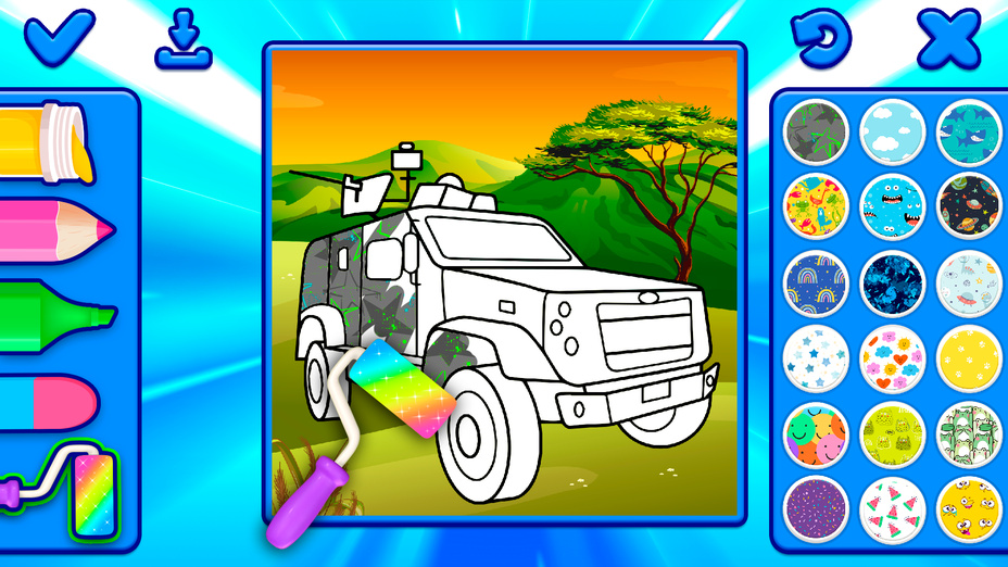 Colorir Para Meninos cativa com seus visuais dinâmicos e uma configuração simples que permite que as crianças liberem sua criatividade. O jogo combina imagens de alta qualidade com uma rica paleta de cores e ferramentas de desenho essenciais, promovendo um ambiente envolvente que promove a expressão artística e a diversão.