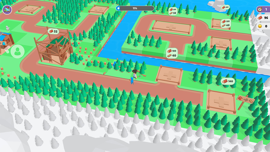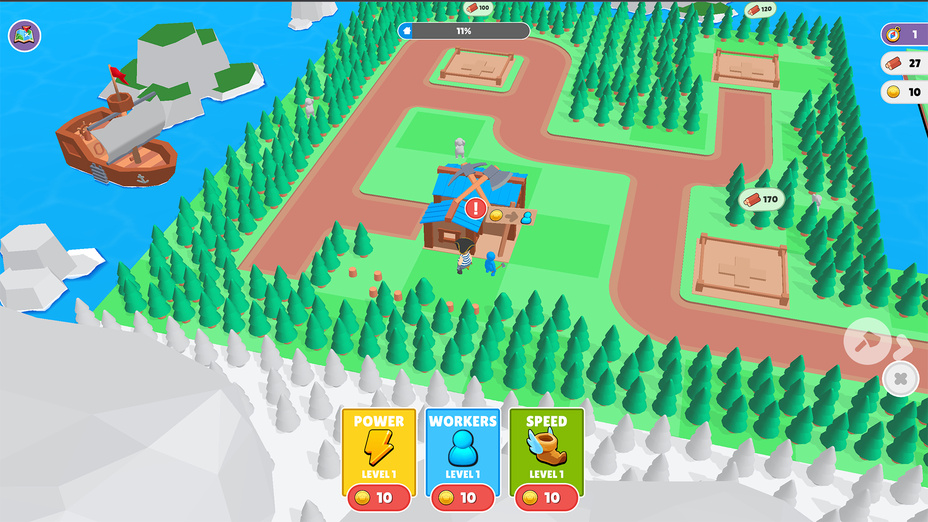 Colete recompensas no jogo e use-as para aumentar a força e a velocidade de sua equipe de lenhadores para uma construção mais rápida.