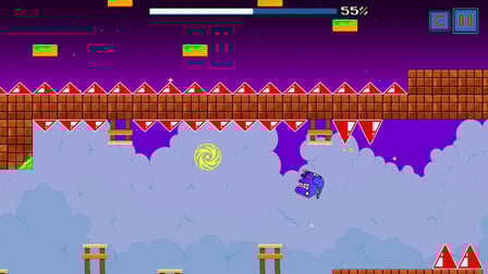 Geometry Dash Master prospera em sua mecânica central de desafios baseados em ritmo. Navegue por gráficos e animações cativantes, garantindo que cada movimento seja sincronizado com as batidas pulsantes de suas faixas favoritas. O coração da experiência está em superar cada desafio tentador com sucesso enquanto sente a emocionante corrida do progresso.