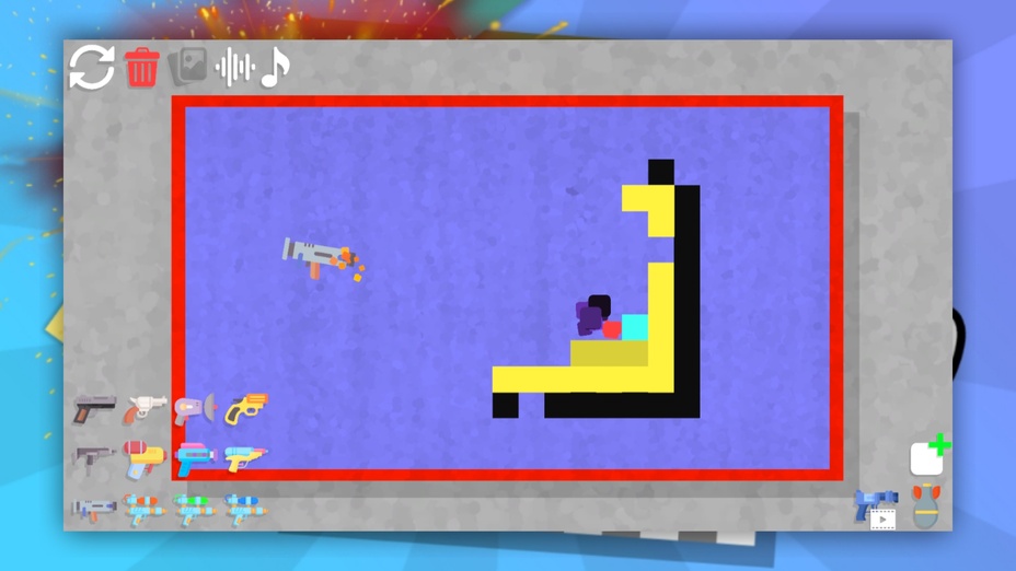 - Use o mouse ou a tela sensível ao toque para desenhar e selecionar armas
