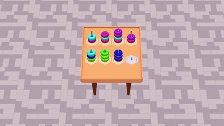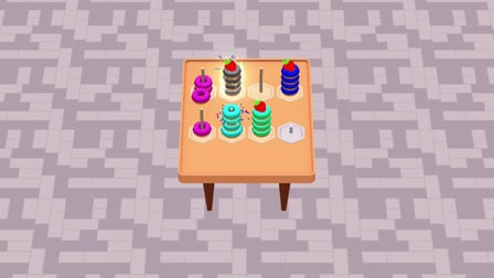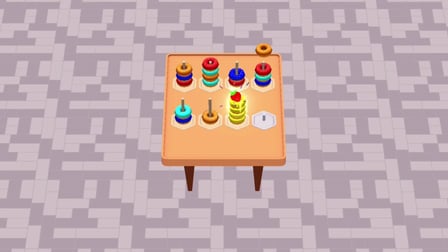 Utilize seu mouse ou tela sensível ao toque para interagir. Toque ou clique para levantar um anel. Depois, toque ou clique em outra pilha para soltá-lo. Cada ação requer precisão, pois apenas um anel pode ser movido por vez. Cada torre comporta até quatro anéis, então planeje de acordo.