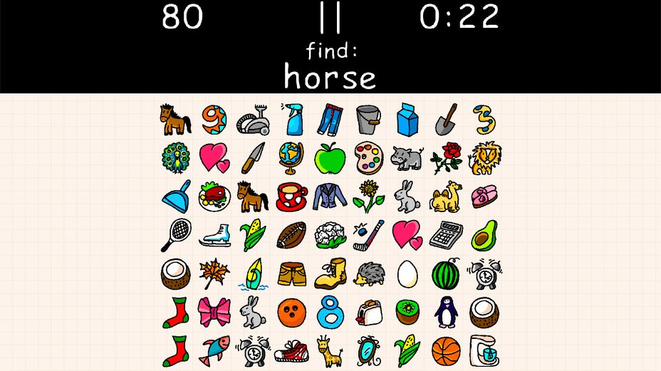 Em Doodle Find-find the object, você aproveitará seu olho afiado e reflexos rápidos para descobrir itens escondidos. O jogo apresenta dois modos de adrenalina-cronometrado e Non-stop. No modo cronometrado, você tem 90 segundos para encontrar o maior número possível de objetos, enquanto o modo Non-stop apresenta um desafio sem fim, com apenas alguns segundos de sobra para cada achado. Conforme você progride, ganhe classificações de novato a não poderia ser mais legal, provando sua proeza no domínio de objetos ocultos. O jogo é adequado para jogadores de todas as idades que gostam de uma busca rápida e encontrar jogabilidade.