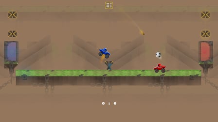 Em Drive Ahead! Futebol, você assumirá o controle de vários veículos peculiares para marcar gols contra seus adversários. O jogo apresenta uma série de arenas dinâmicas e elementos imprevisíveis, como foguetes a jato e mudanças de gravidade, oferecendo uma experiência de jogo única e emocionante. Sem restrições de idade específicas, este jogo é perfeito para adolescentes e entusiastas de corridas que gostam de uma mistura de estratégia e caos. Desafie seus amigos ou compita contra o computador neste derby de futebol de alta octanagem.