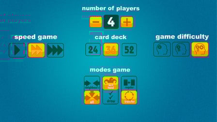 Atualmente, Durak Transfer Regular Cards é projetado para jogar sozinho contra oponentes de computador. As opções Multiplayer não estão disponíveis.