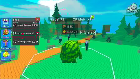 Você pode melhorar o dano de Glorbo, o raio de ataque, a velocidade de movimento e até multiplicar seus ganhos!