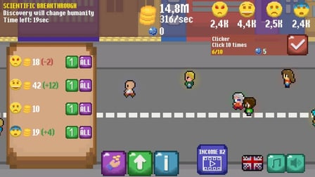 O jogo é simples de entender. Para jogar no seu telefone, basta tocar nas emoções dos personagens para coletá-las, enquanto que no computador, clique com o mouse. Assim que você tiver um número suficiente de emoções, dirija-se ao mercado para vendê-las e acumular uma renda passiva.