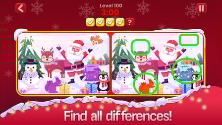 Mergulhe no mundo de Find the Differences: Winter tale e aprimore suas habilidades de observação enquanto explora cenas vibrantes de férias. O objetivo é simples: encontrar e destacar as diferenças entre duas imagens quase idênticas. Os jogadores são incentivados a tomar seu tempo e aproveitar o desafio, tornando esta uma experiência relaxante, mas estimulante.
