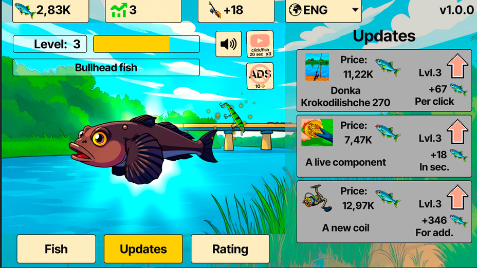Fishing Clicker apresenta uma variedade de espécies de peixes que aparecem ao longo dos níveis, cada um oferecendo desafios e recompensas exclusivas.