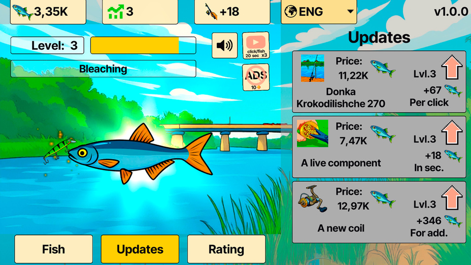 Bem-vindo ao Fishing Clicker, uma emocionante aventura online onde você pode testar suas habilidades de pesca e melhorar seu equipamento enquanto se esforça para se tornar o pescador supremo! Embarque em uma jornada emocionante através de vários níveis para identificar peixes exclusivos e pescá-los com precisão. Mergulhe nas águas grátis e aprecie a adrenalina de uma pescaria frenética!