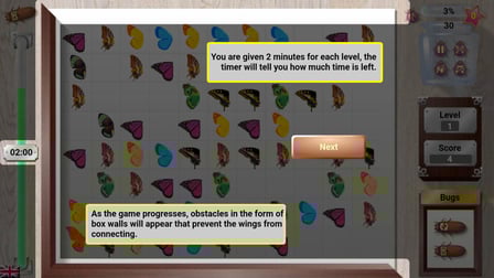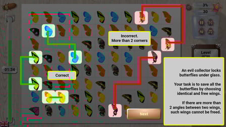 Use o mouse para clicar nas asas de borboleta que combinam na tela ou toque nelas se você estiver jogando em um dispositivo móvel. Evite selecionar asas bloqueadas por obstáculos!