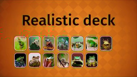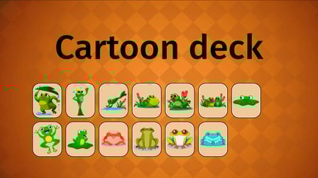 Frog Cards apresenta três baralhos únicos: cartas de jogo, cartas de desenho animado e cartas realistas, todos centrados em rãs adoráveis.