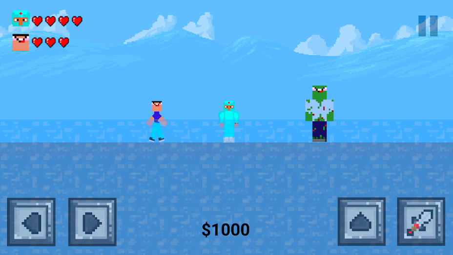 Os controles em Noob vs Pro 1 são intuitivos: use as teclas de seta ou os botões na tela para mover, pular e atacar. Para usuários móveis, deslize e toque para movimentação e ações. Aprimore sua estratégia experimentando diferentes habilidades dos personagens!