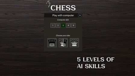O My Chess possui três níveis de habilidade para jogo contra o computador, garantindo que jogadores de todas as habilidades possam encontrar um desafio adequado.