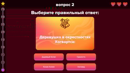 Comece acessando o site no seu computador ou telefone. O jogo apresentará uma pergunta. Clique ou toque na resposta que você acredita ser a correta. Se você estiver em dúvida, pense nos seus momentos favoritos da série Harry Potter — eles podem te guiar! Cada resposta errada custará corações, então escolha sabiamente.