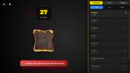 Dominar o Golden Toast Clicker é tudo sobre estratégia e timing. Foque em melhorar seu poder de clique logo no início, o que aumenta exponencialmente seus ganhos. Não se esqueça de explorar os temas e skins para manter sua experiência de jogo sempre fresca e visualmente deslumbrante!