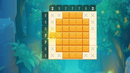 O objetivo é preencher os quadrados corretos com base em pistas numéricas para revelar uma imagem oculta.