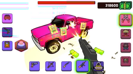 Selecione sua arma usando o mouse sobre computador ou toque no ícone da arma em seu celular dispositivo. Mire no veículo antes de clicar ou tocar para liberar seus ataques. Certifique-se de desviar de todos os obstáculos que se aproximam e aproveite o caos!