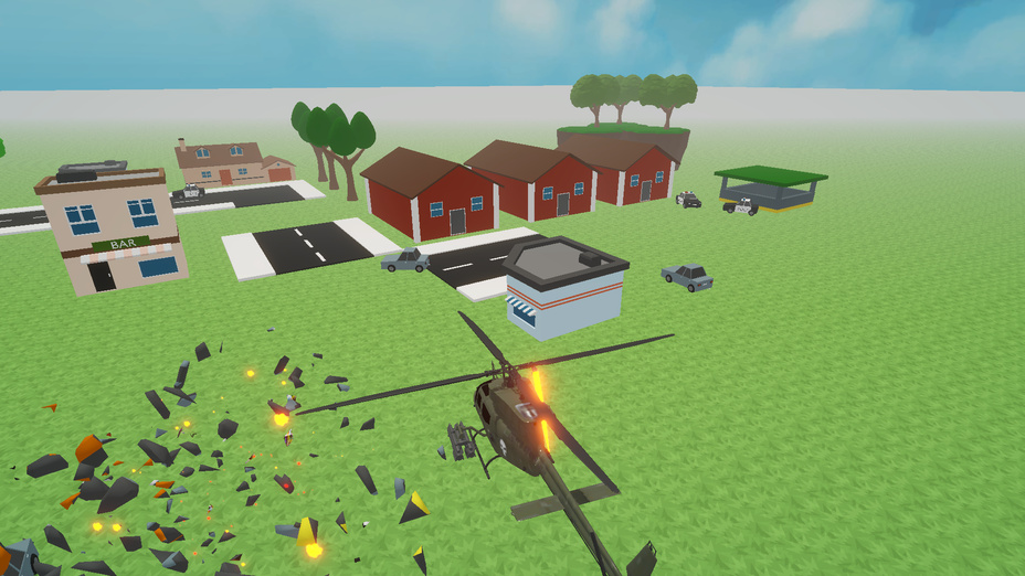 - Usar Controles: Navegue em seu helicóptero usando os controles na tela ou o teclado (detalhado abaixo) para mirar e destruir edifícios, veículos e outras estruturas.
