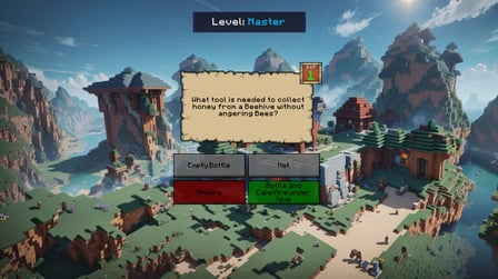 Espere uma mistura de perguntas fáceis a desafiadoras que cobrem diversos aspectos do Minecraft, incluindo mobs, blocos e mecânicas do jogo!