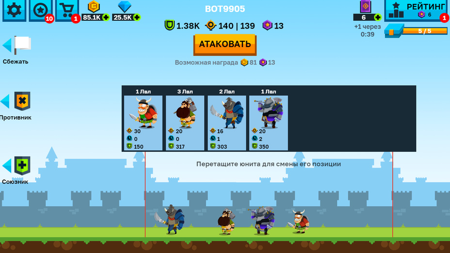 No seu dispositivo móvel, toque para selecionar e posicionar unidades defensivas, deslize para navegar e use os botões na tela para atacar. On computador, clique para posicionar suas defesas e use atalhos de teclado para executar comandos rapidamente no calor da batalha.