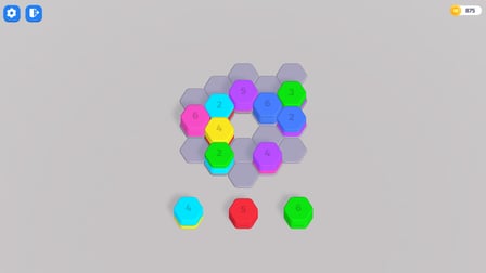 Os jogadores arrastam e soltam blocos hexagonais no tabuleiro para mesclar cores idênticas e Peças claras. O objetivo é marcar pontos organizando os blocos de forma eficiente.