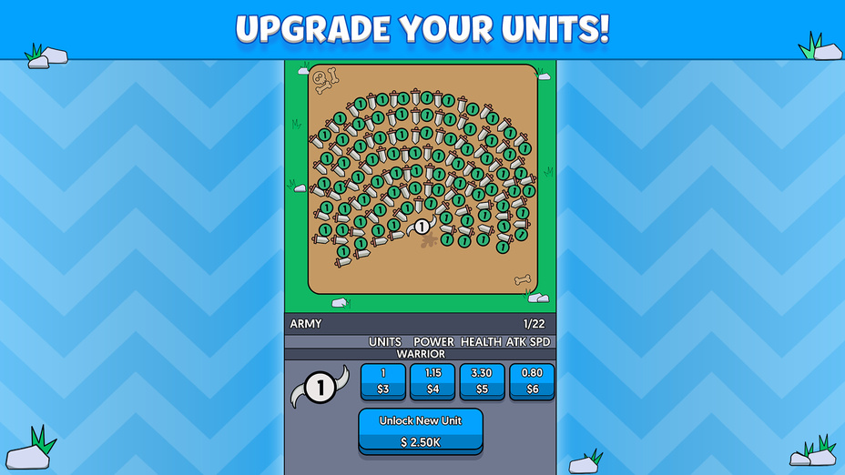 Jogar Idle Army: Battle for the Lands é fácil, mas envolvente! Comece selecionando suas unidades iniciais em seu computador com o mouse. Para celular usuários, um simples toque será suficiente. Navegue por cada território comandando seu exército com sabedoria, maximizando suas forças contra vários inimigos. Colete recursos após as batalhas e use-os para atualizações, fornecendo assim novos recursos aos seus lutadores.