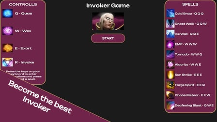 Inspirado na cativante tradição dos conjuradores de feitiços, o jogo Invoker apresenta uma emocionante mistura de habilidade e magia. Sua gênese está em aprimorar os tempos de reação dos jogadores e as habilidades de Conjuração em uma arena virtual. O jogo presta homenagem à intrincada mecânica dos feiticeiros clássicos, atraindo os jogadores para sua jogabilidade fascinante.
