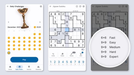 - Desafios diários de Sudoku com troféus exclusivos.