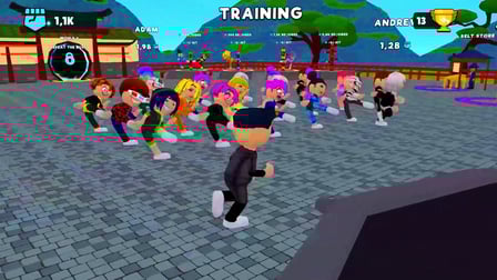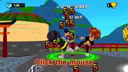 Entre no emocionante mundo de Mestre De Karatê: Robby, um jogo sandbox que combina o melhor do roblox e das artes marciais asiáticas. Aqui, sua missão é derrote todos os inimigos e despontar como o melhor lutador. Acumule pontos, suba na tabela de classificação e mostre suas habilidades em batalhas épicas. Com vários níveis de dificuldade para conquistar, upgrades de personagens, animais de estimação e skins, Karate Master: Robby oferece uma experiência imersiva para todos os fãs de jogos no estilo Roblox.