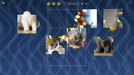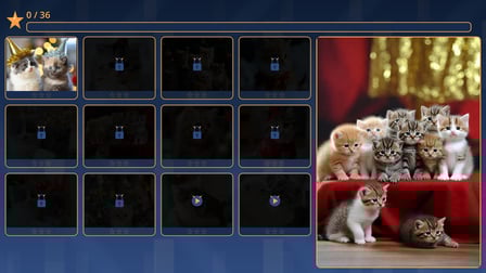 Jogar Kitty! Here Kitty Kitty! é tão simples quanto 1-2-3! Comece selecionando uma imagem de quebra-cabeça de sua escolha. Use o mouse no seu computador para clicar e arrastar as peças para seus lugares corretos. Se você estiver usando um telefone, basta tocar e arrastar para posicionar as peças. O objetivo é completar o quebra-cabeça o mais rápido possível para ganhar mais estrelas!