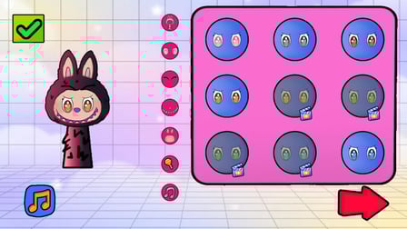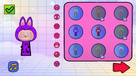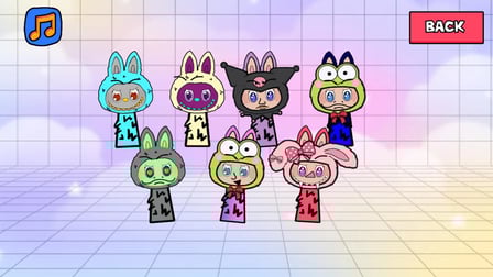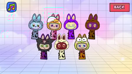 Comece sua jornada lançando Labubu: Crie Sprunki e Música em qualquer navegador. Use seu telefone ou computador para selecionar formas de corpo, cores e atributos musicais para seu personagem. Basta arrastar e soltar ou tocar nas combinações até revelar um novo personagem!