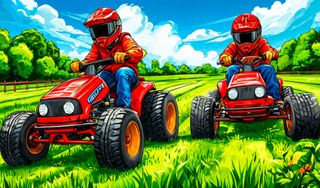 Lawn Mower Battle for Two é um emocionante jogo multiplayer onde você pode competir em batalhas de cortadores de grama de alta octanagem. Jogue online gratuitamente sem baixar e mergulhe na atmosfera cheia de adrenalina. Se você prefere se esquivar de ataques ou bater em oponentes, você encontrará diversão sem fim enquanto se esforça para se tornar o melhor campeão de cortador de grama. Com vários modos de jogo, incluindo derby, futebol e interceptação, sempre há um novo desafio esperando. Perfeito para adolescentes e quem procura um jogo de festa emocionante, Lawn Mower Battle for Two promete uma experiência de jogo inesquecível.