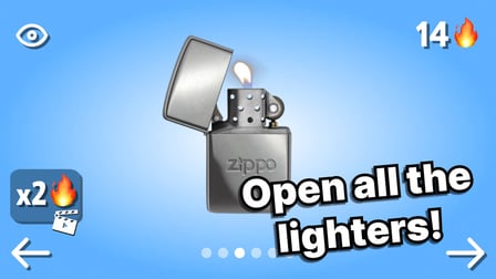 A: O jogo apresenta seis isqueiros diferentes com designs e efeitos exclusivos.