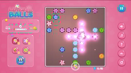 Lines & Balls é tudo sobre movimento estratégico e planejamento. O objetivo é organizar bolas da mesma cor em uma linha de cinco ou mais. A mecânica simples do jogo é combinada com uma jogabilidade desafiadora, exigindo que os jogadores pensem vários movimentos à frente. Cada movimento é crucial à medida que novas bolas aparecem, enchendo gradualmente o tabuleiro e aumentando a dificuldade. A tensão de tentar manter o tabuleiro limpo enquanto marca o máximo de pontos possível torna este jogo emocionante e viciante.