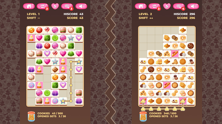 Mahjong Sweet Connect é um jogo de quebra-cabeça delicioso que combina a mecânica clássica do Mahjong com um toque doce e com tema de doces. Seu objetivo é conectar duas peças idênticas para limpar o tabuleiro. Com chocolates, pirulitos, bolos, frutas e outras guloseimas, este jogo é perfeito para jogadores de qualquer idade. Sem limite de tempo, você pode relaxar e curtir o jogo no seu próprio ritmo. O jogo salva seu progresso automaticamente, permitindo que você continue exatamente de onde parou. Mais, Mahjong Sweet Connect carrega rapidamente e funciona sem problemas em computadores e telefones celulares, dispositivos ainda mais antigos e lentos.