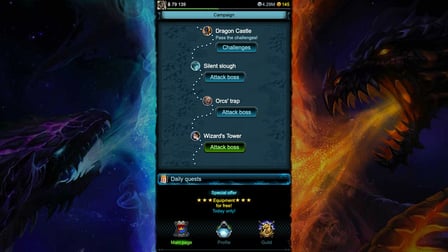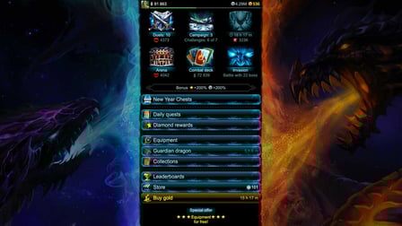 Crie estratégias para seus movimentos Entendendo os pontos fortes e fracos de cada elemento. O fogo é agressivo e poderoso, enquanto a água pode ser fluida e adaptativa. A escuridão tem suas próprias vantagens misteriosas, com a Terra fornecendo defesa sólida e o ar oferecendo manobras rápidas. Combine esses elementos com sabedoria para criar um deck equilibrado e formidável. Participe de batalhas de Arena com frequência para ganhar ouro e desbloquear cartas raras. Completar tarefas diárias é uma ótima maneira de aumentar suas reservas de ouro e expandir sua coleção de cartas rapidamente.