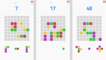 Começar a jogar Match 3 Brick Game é muito fácil! No computador, use o mouse para arrastar e soltar as peças no campo de jogo. Para jogadores móveis, basta tocar e deslizar para posicionar seus blocos. O objetivo é alinhar três ou mais blocos da mesma cor vertical ou horizontalmente para marcar pontos e removê-los do tabuleiro.
