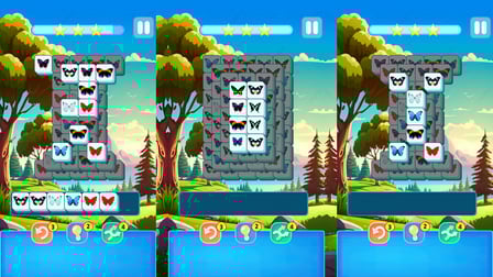 Matching Tiles: Butterflies prospera em sua mecânica central de pareamento de peças, entrelaçada com uma atmosfera serena criada por paisagens sonoras calmas e visuais belíssimos. Cada nível do quebra-cabeça apresenta um desafio único que aumenta gradualmente em dificuldade, enquanto ainda facilita uma experiência imersiva e agradável.