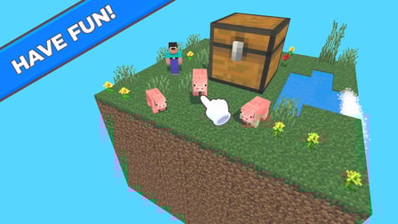 - Gráficos de pixel 3D que dão vida ao Skyblock
